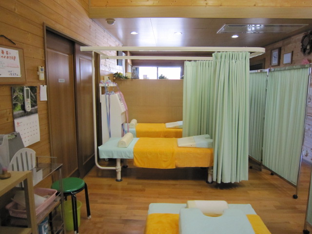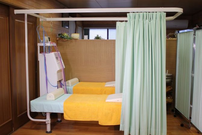 電気治療用ベッドがあります。ベッドの間はカーテンで仕切っている為周りの視線が気になりません。